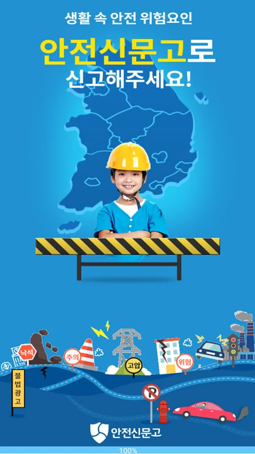 "생활속의 안전 위험요인 제거" 재난은 나의 작은 관심으로 막을 수 있습니다. 안전신문고 앱으로 언제 어디서나 간편하게 신고하세요!