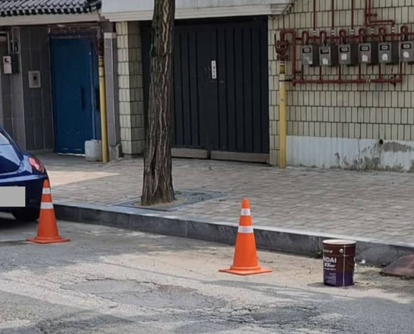 어떤 분들은 이 곳에 자신만 주차하기 위한 도구를 설치합니다.