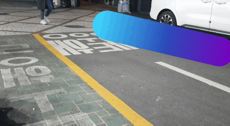 바닥에 일방통행 표시가 같이 나오게 촬영해야 합니다.